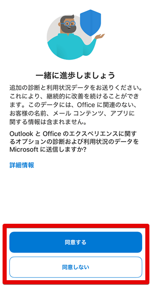 - [Outlookの使用を続ける]をタップします。